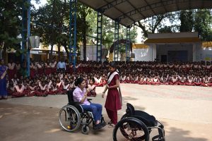 Swarnalatha delivered her first TEDx talk at Chinmaya International Residential School on the topic, “Unleash your Potential”.  She briefly covered topics like her childhood, the phase of diagnosis with Multiple Sclerosis, progressive disability, support from husband and children and her journey with Swarga Foundation. She received a standing ovation from an audience of 300+ students and teachers.